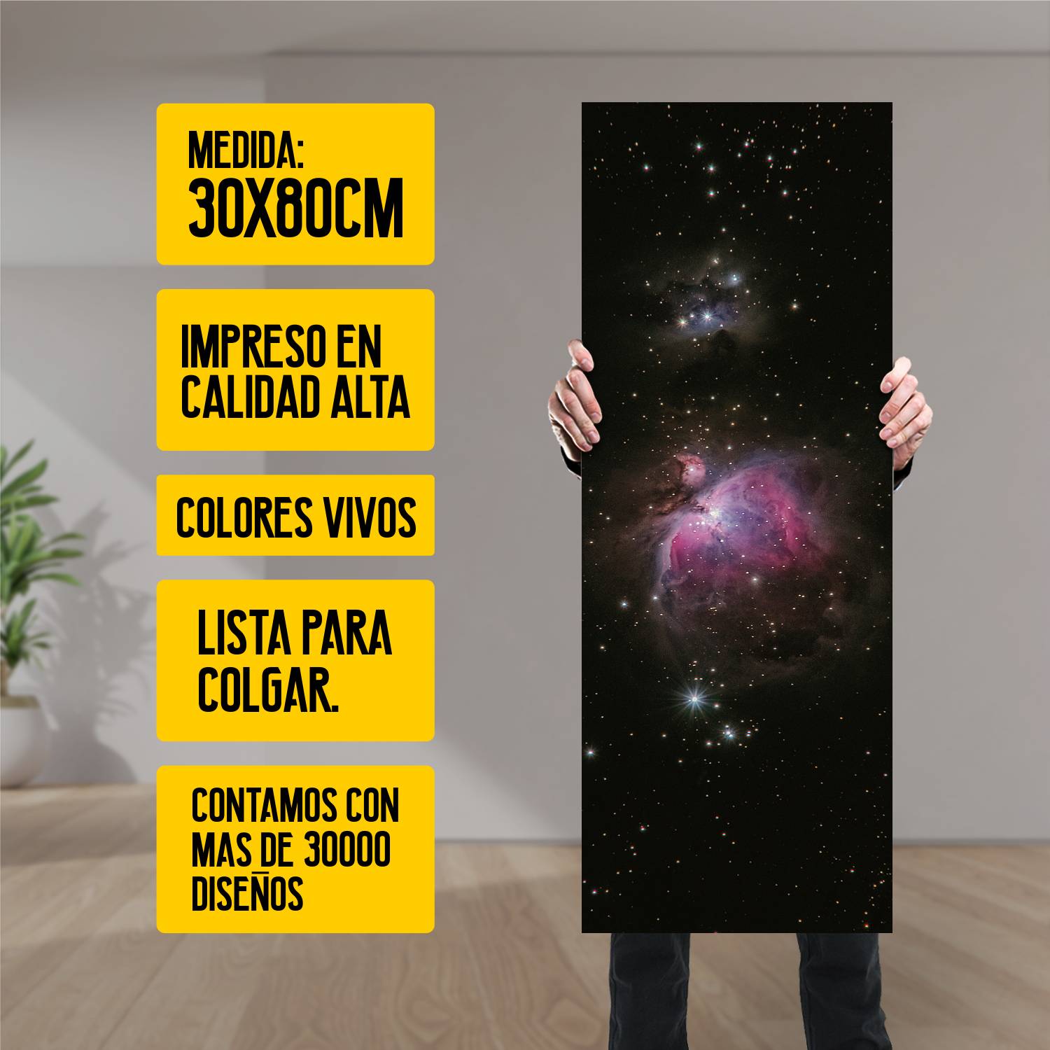 Ya viene listo para colgar, lo que significa que puedes disfrutar de tu nuevo arte en un instante. Con mas de 10 años de experiencia en el sector, ofrecemos productos de alta calidad que transformarán tus ambientes.