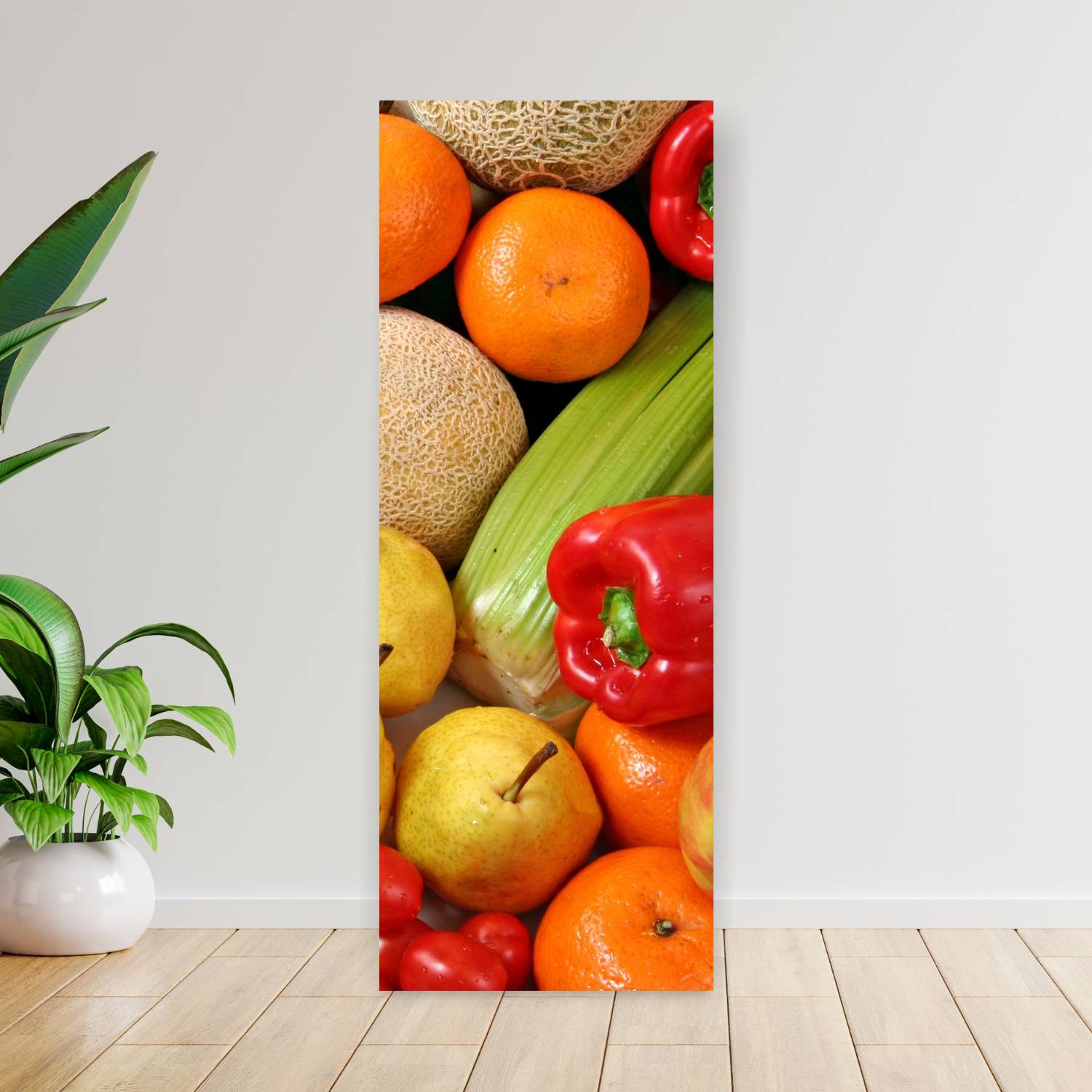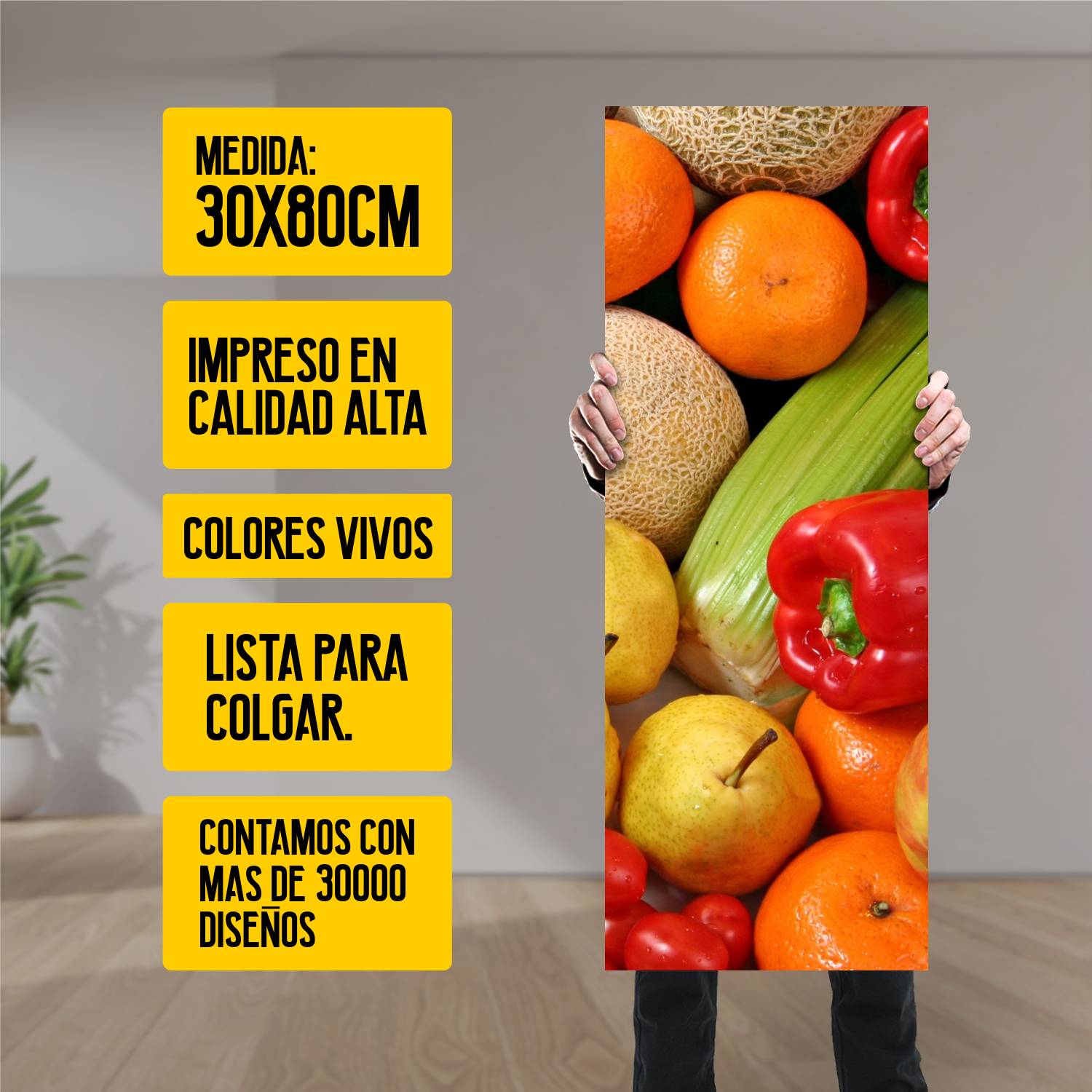 Descubre la elegancia y el estilo con nuestro cuadro impreso en canva full color de 30×80 cm. Este impresionante diseño de verduras fondo es el complemento perfecto para cualquier espacio.