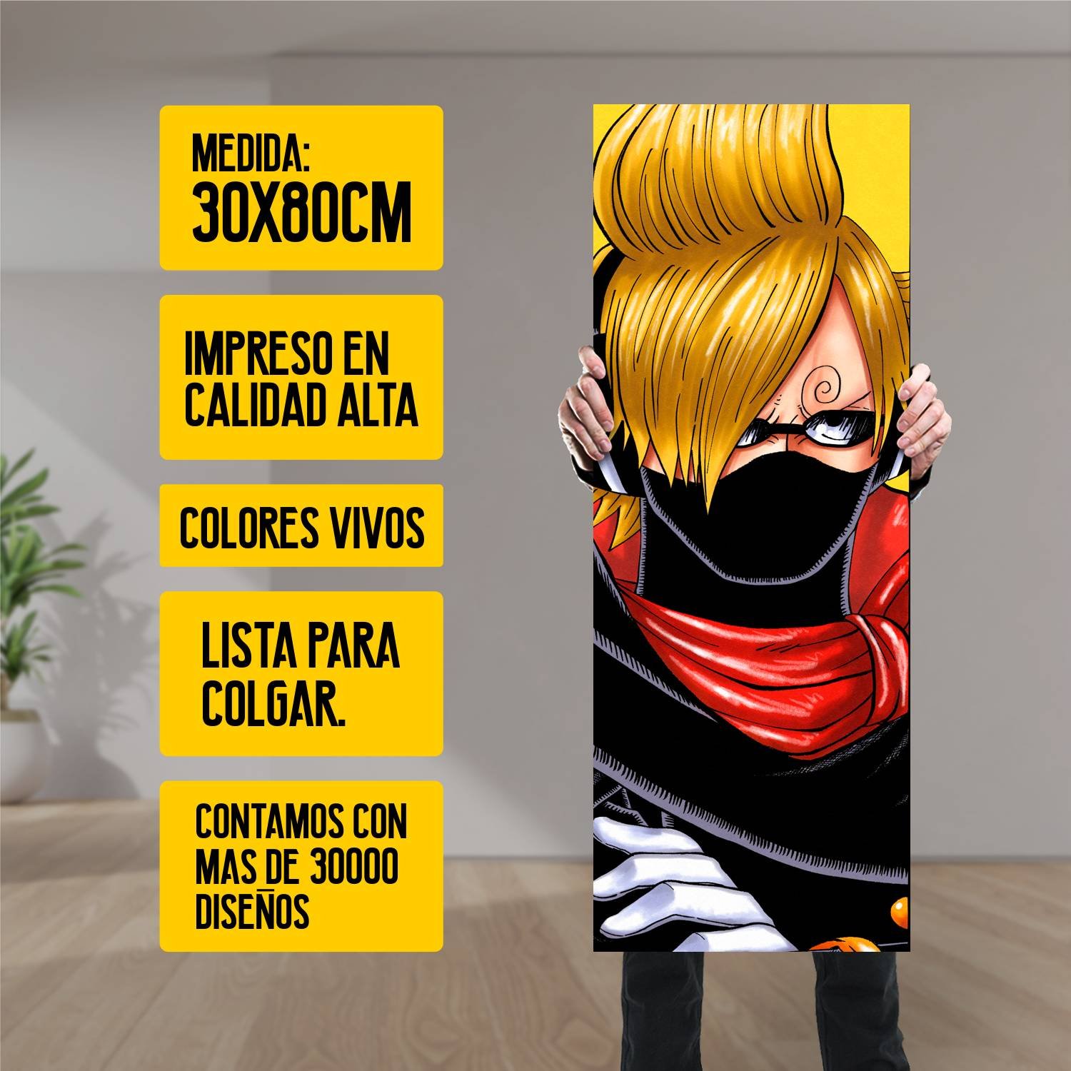Descubre la elegancia y el estilo con nuestro cuadro impreso en canva full color de 30×80 cm. Este impresionante diseño de Vinsmoke Sanji es el complemento perfecto para cualquier espacio.