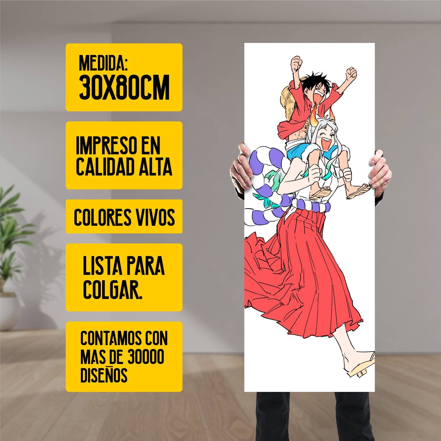 Descubre la elegancia y el estilo con nuestro cuadro impreso en canva full color de 30×80 cm. Este impresionante diseño de Yamato y Luffy es el complemento perfecto para cualquier espacio.